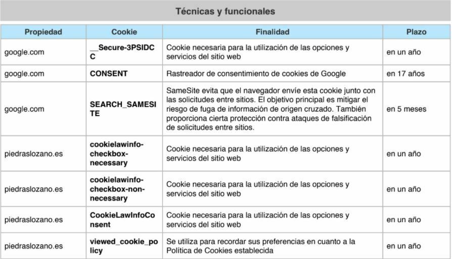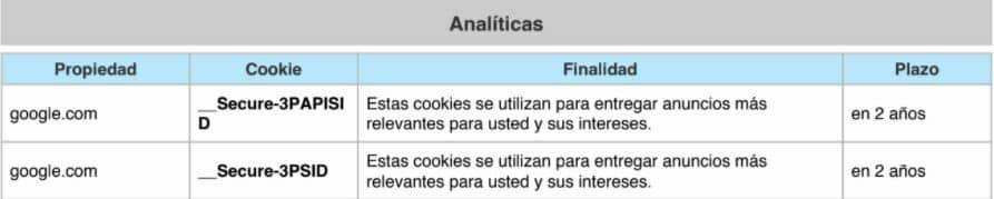 COOKIES UTILIZADAS EN ESTE SITIO WEB